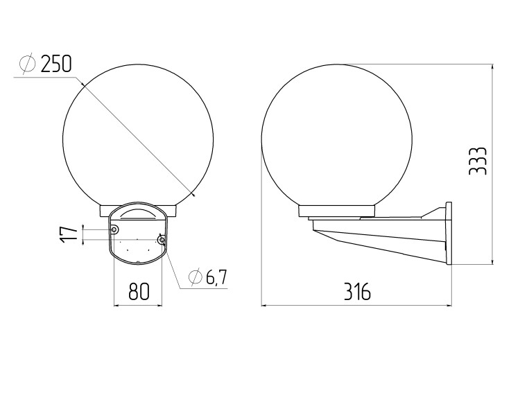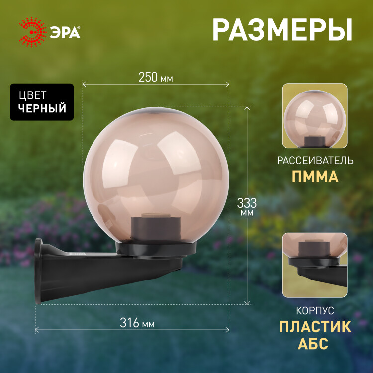 Садово-парковый светильник ЭРА НБУ 01-60-255 шар дымчатый настенный IP44 Е27 max60Вт d250mm