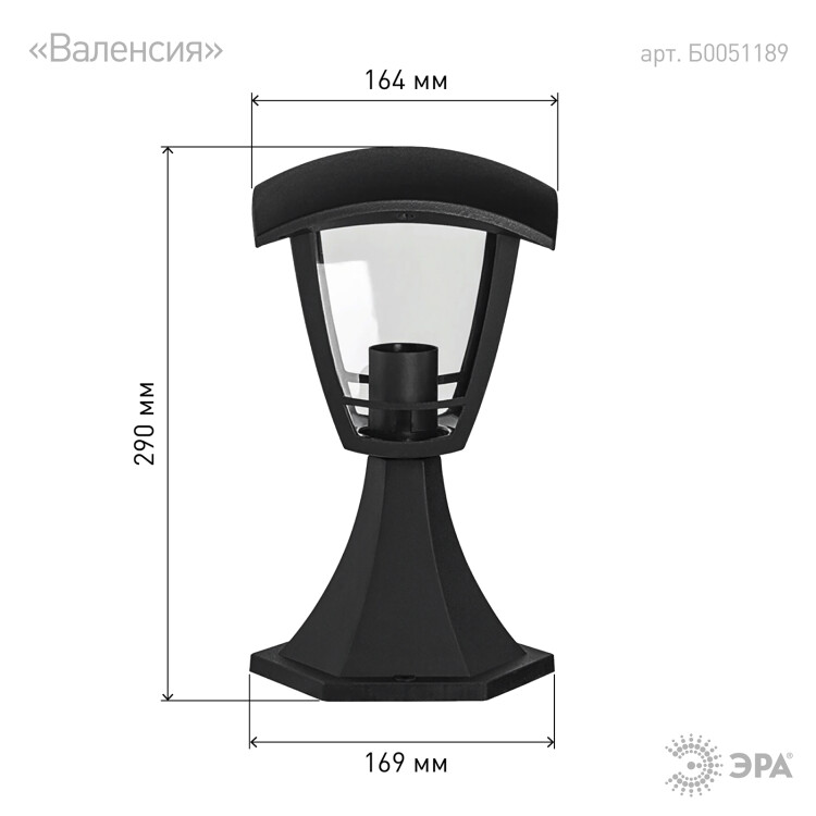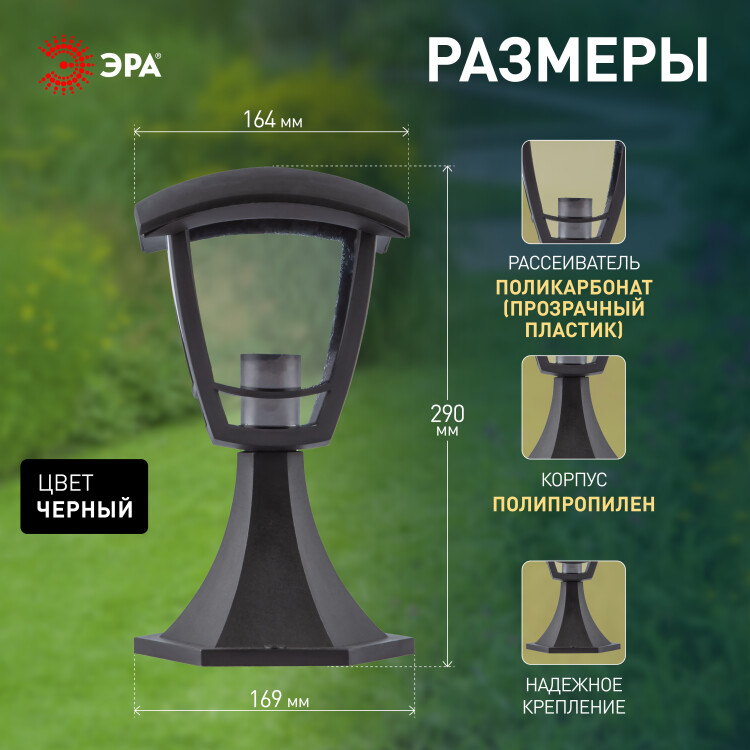 Садово-парковый светильник ЭРА НТУ 07-40-001 Валенсия черный 4 гранный напольный IP44 Е27 max40Вт