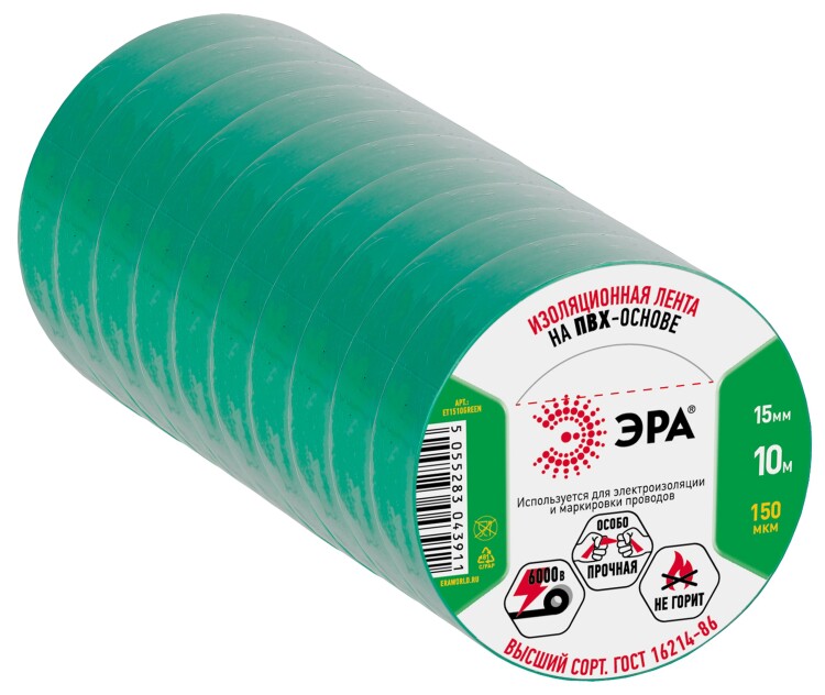 Изолента ПВХ зеленая 15 мм х 10 м (модель 43928/43911)