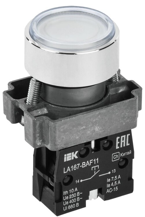 Кнопка LA167-BAF11 d=22мм 1з белая IEK