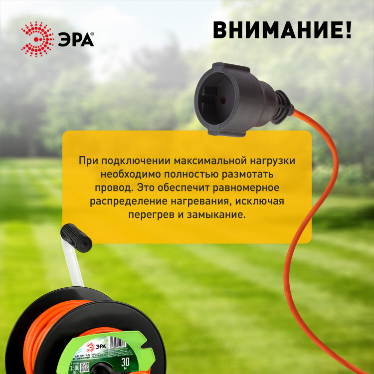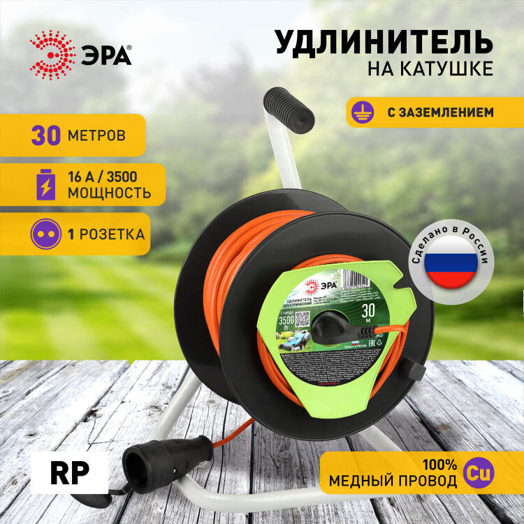 Удлинитель силовой ЭРА RP-1e-3x1.5-30m на пластиковой катушке c заземлением 1 розетка 30м ПВС 3х1,5мм2
