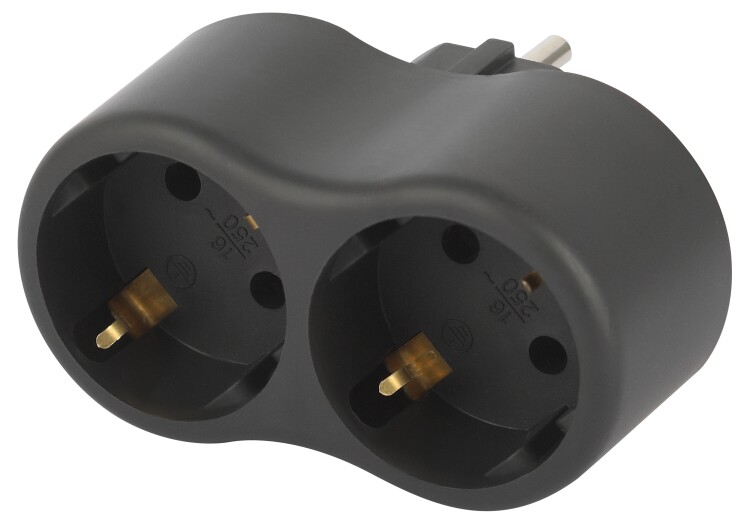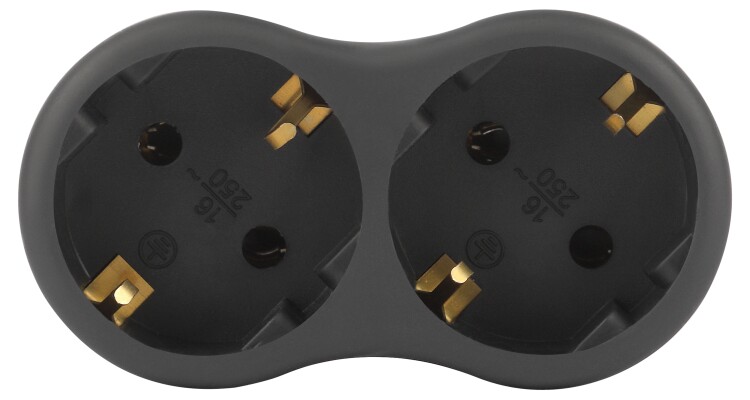 Разветвитель электрический ЭРА SPx-2e-B на 2 розетки с заземлением 16А черный