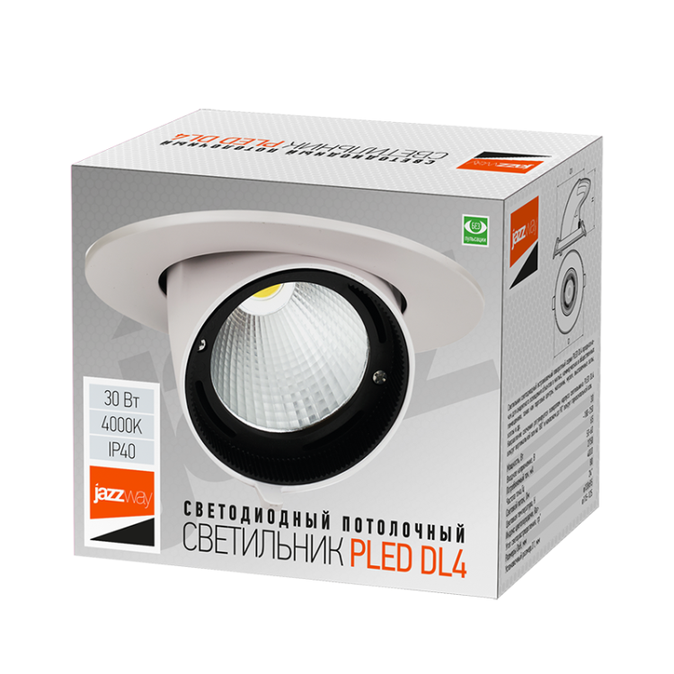 Cветильник встр. LED 30Вт 2750Лм 4000К IP40 белый PLED DL4 30w 4000K IP40