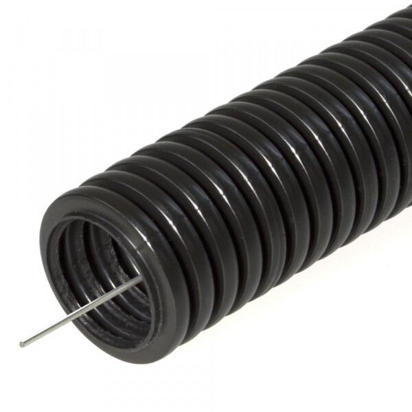 Труба гофрированная ПНД тяжёлая 750 Н безгалогенная (HF) стойкая к ультрафиолету черная с/з д25 (50м