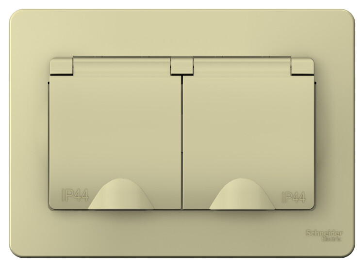 BLANCA С/У IP44 РОЗЕТКА двойная с заземл. со шторк.,с крышк., 16А, 250В, БЕЖЕВЫЙ