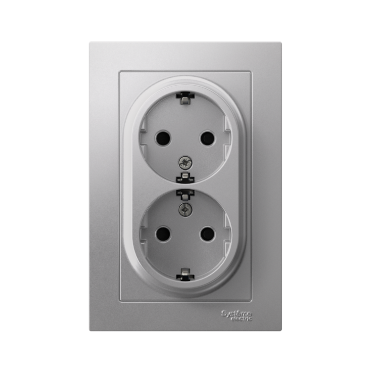 Розетка 2х2P+E со шторками в сборе 16А алюминий AtlasDesign