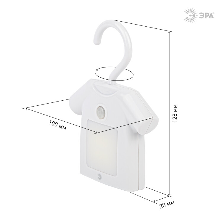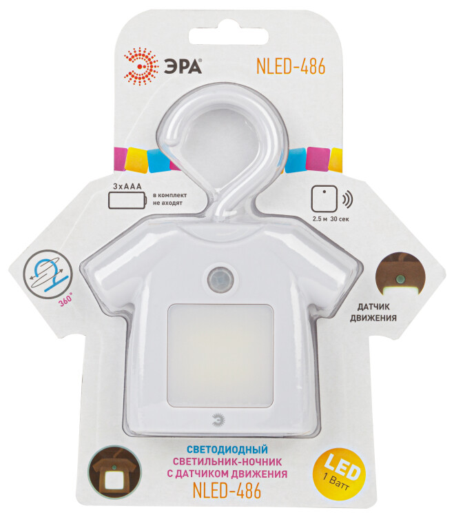Ночник - светильник светодиодный ЭРА NLED-486-1W-MS-W на батарейках с датчиком движения белый