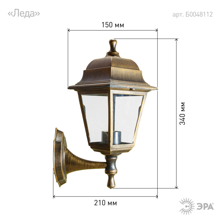 Садово-парковый светильник ЭРА НБУ 04-60-001 бронза 4 гранный настенный IP44 Е27 max60Вт
