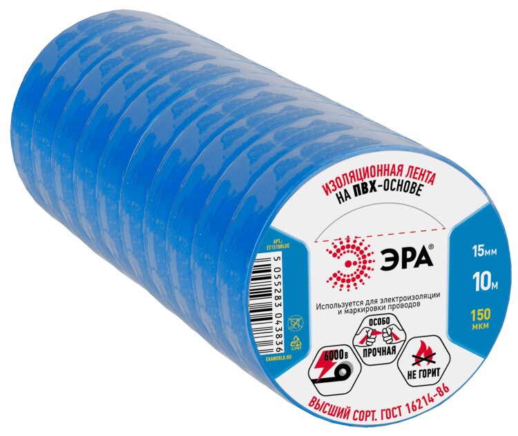 Изолента ПВХ синяя 15 мм х 10 м (модель 43943/43846)