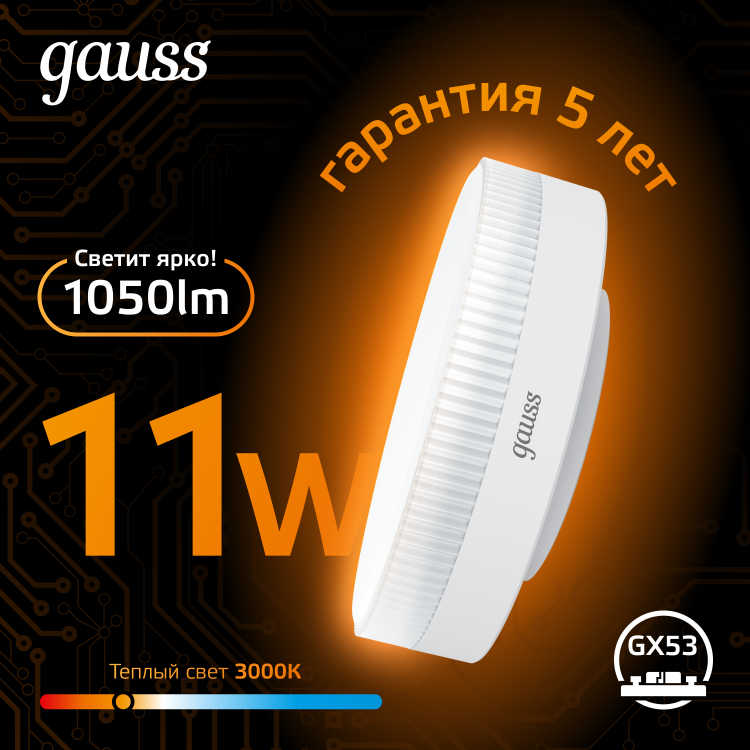 Лампа светодиодная 11 Вт GX53 3000К таблетка матовая, тёплый белый
