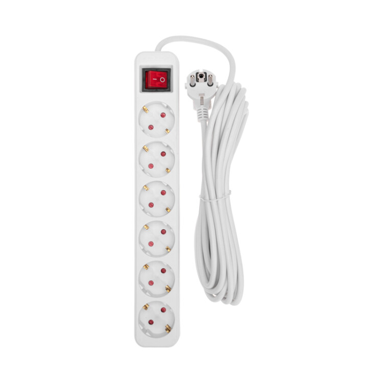 Удлинитель STANDARD 6 гнезд, 5м, 3x1,0мм², с/з, с выключателем, белый REXANT