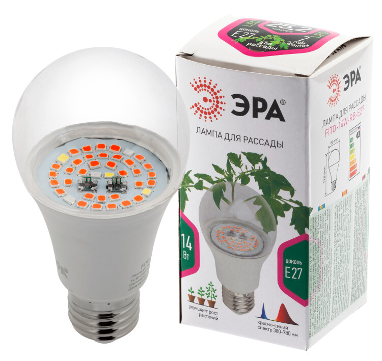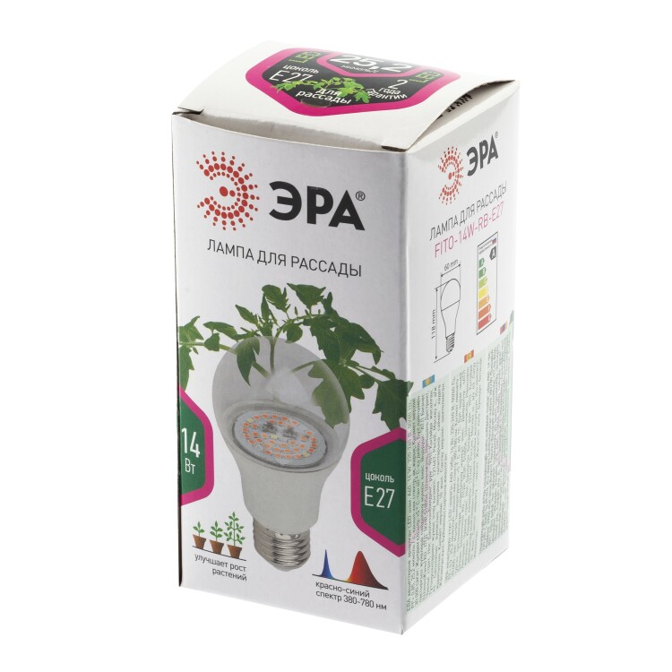 Фитолампа для растений светодиодная ЭРА FITO-14W-RB-E27 красно-синего спектра 14 Вт Е27