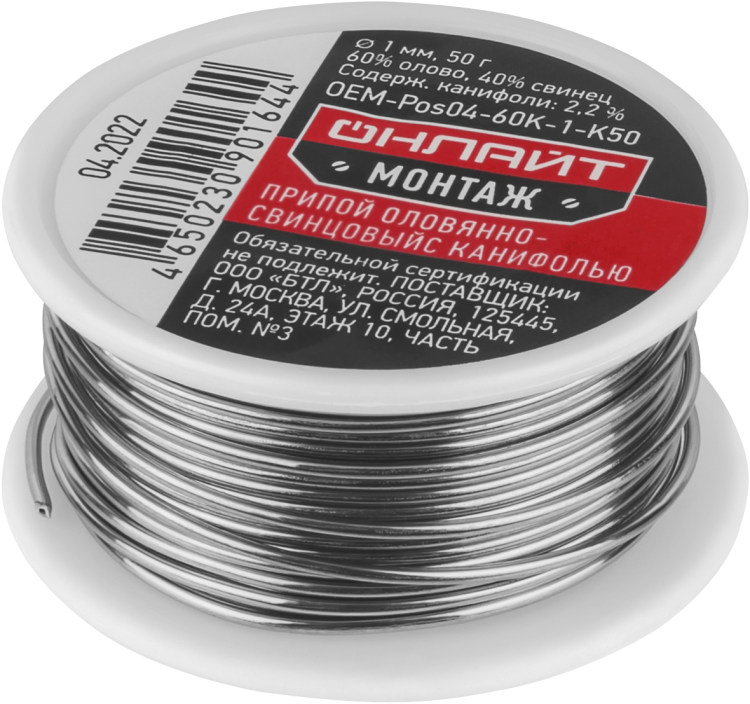 Припой ОНЛАЙТ 90 164 OEM-Pos04-60K-1-K50 (катушка, 1мм, 50г)