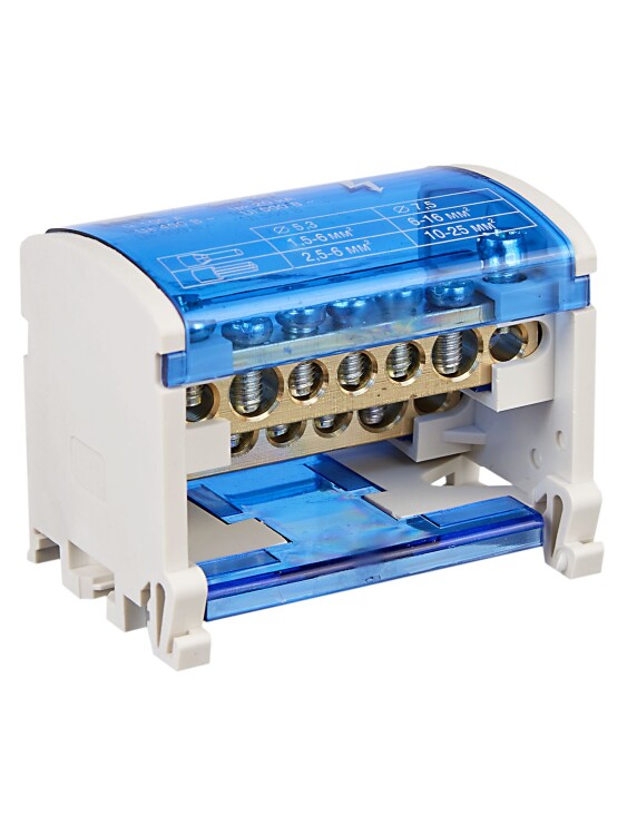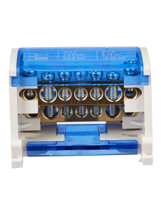 Кросс-модуль на DIN-рейку, 2 полюса, 100 А, 5х1,5-6 мм², 2х6-16 мм²