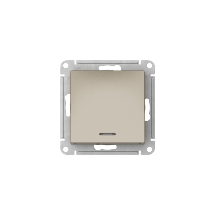 ATLASDESIGN 1-клавишный ВЫКЛЮЧАТЕЛЬ с подсветкой, сх.1а, 10АХ, мех., быстрозажим. клем., ШАМПАНЬ