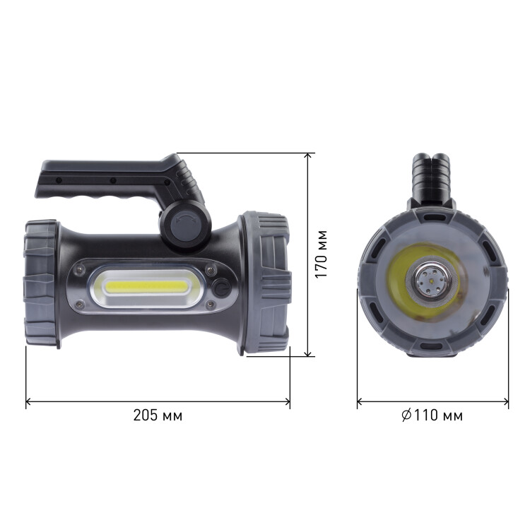 Фонарь прожектор [10W SMD+ БОКОВОЙ COB, ЛИТИЕВЫЙ АКК 3000МАЧ/ 3,7V, IP65, MICROUSB] PA-703