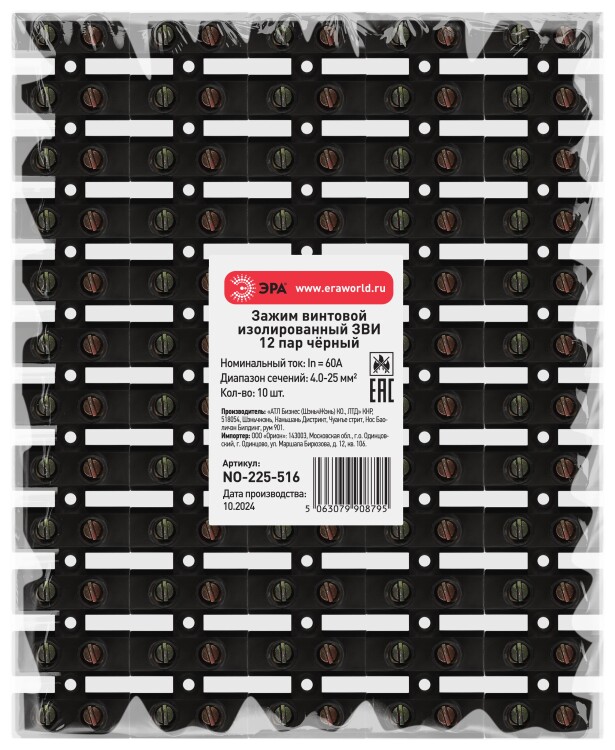 Зажим винтовой ЭРА NO-225-516 изолированный ЗВИ-нг 60А (4.0-25 мм2) 12 пар чёрный