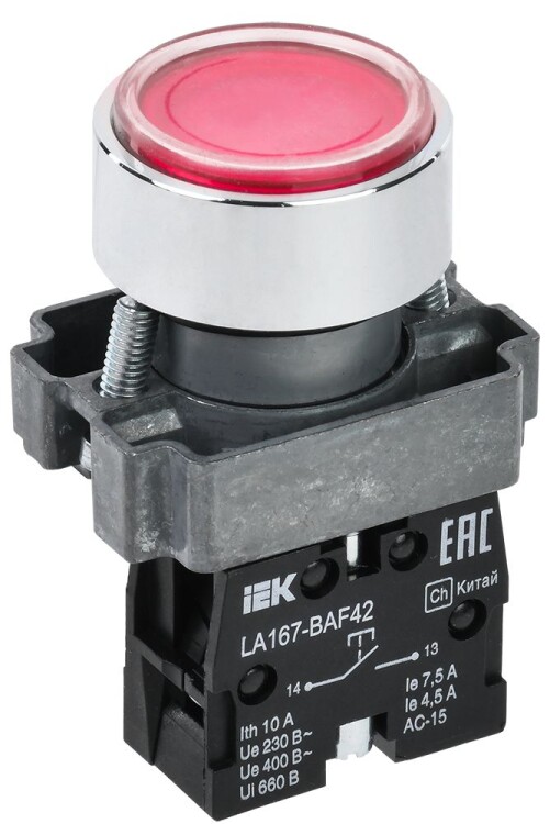 Кнопка LA167-BAF42 d=22мм 1р красная IEK