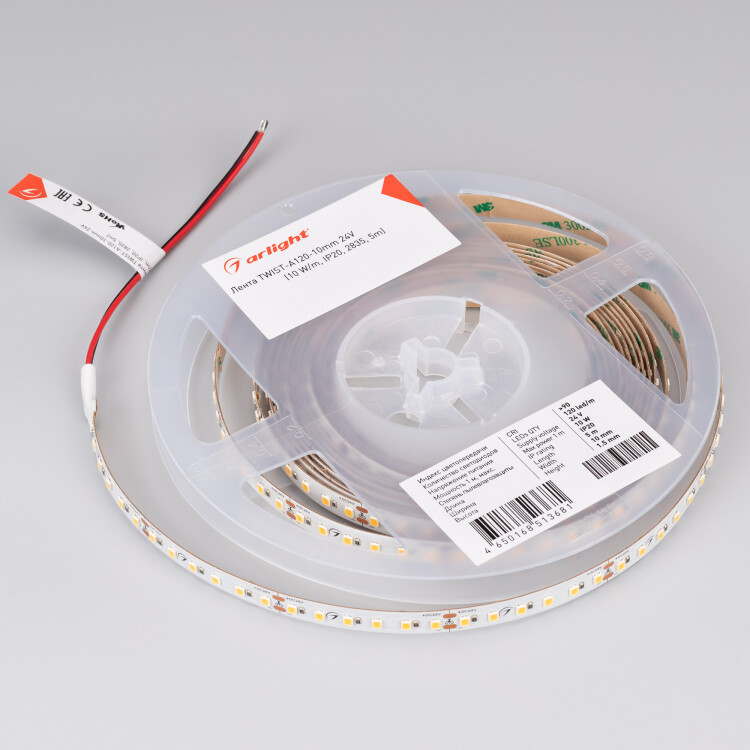 Лента TWIST-A120-10mm 24V Day4000 (10 W/m, IP20, 2835, 5m) (Arlight, Открытый)