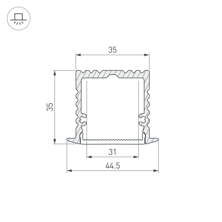Алюминиевый Профиль встраиваемый ALU-POWER-W35-2000-F ANOD+FROST с экраном (2 метра)