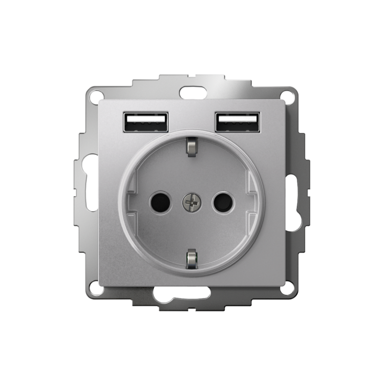 Розетка 2P+E с 2хUSB 5В/2,4А 2х5В/1,2А 16А алюминий AtlasDesign