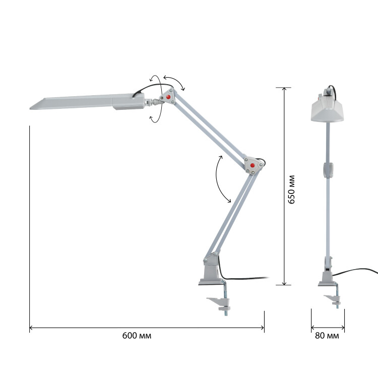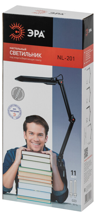 Настольный светильник ЭРА NL-201-G23-11W-GY с лампой PL на струбцине серый