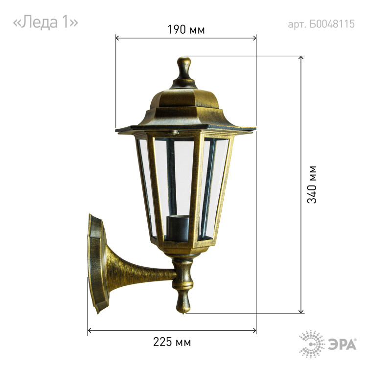 Садово-парковый светильник ЭРА НБУ 06-60-001 бронза 6 гранный настенный IP44 Е27 max60Вт