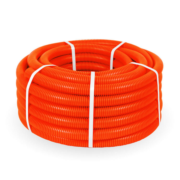 Труба гофрированная ПНД лёгкая 350 Н безгалогенная (HF) оранжевая с/з д32 (25м/1375м уп/пал)