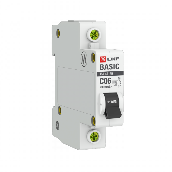 Автомат. выкл. 1-пол. 6А тип C 4,5кА серия ВА 47-29 EKF Basic