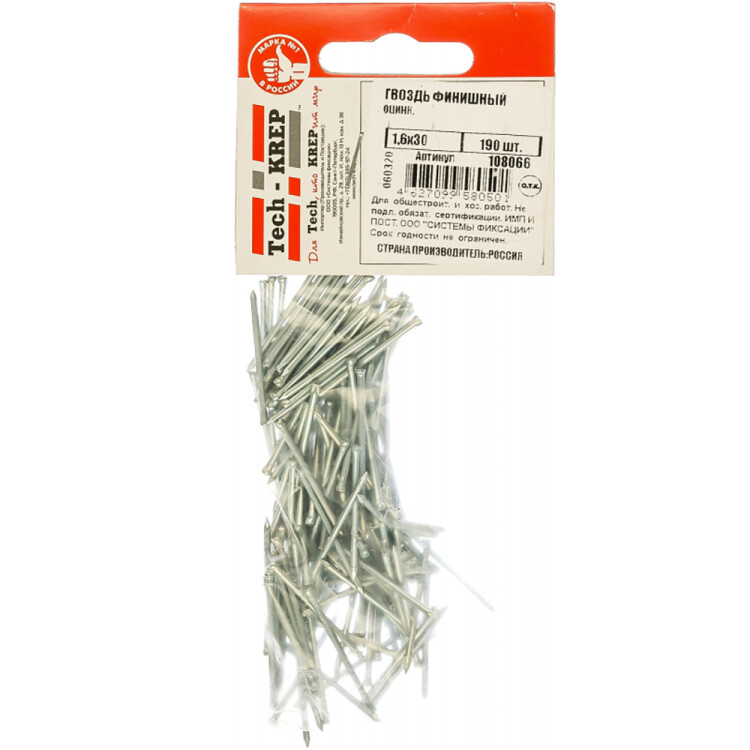 Гвоздь финишный оцинк. 1,6х30 (190 шт) - пакет