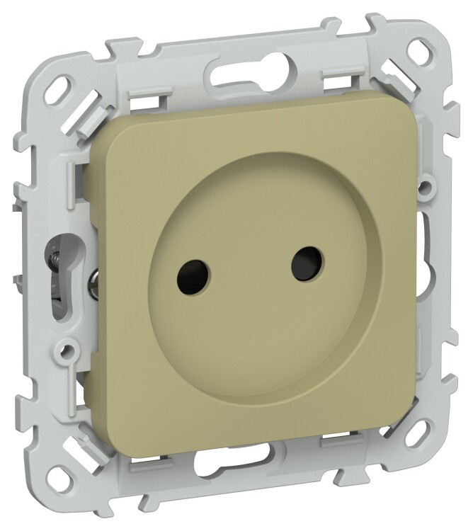 Розетка 2P со шторками безвинтовое крепление 10А РСш01-1-ФлО оливковый FLITE