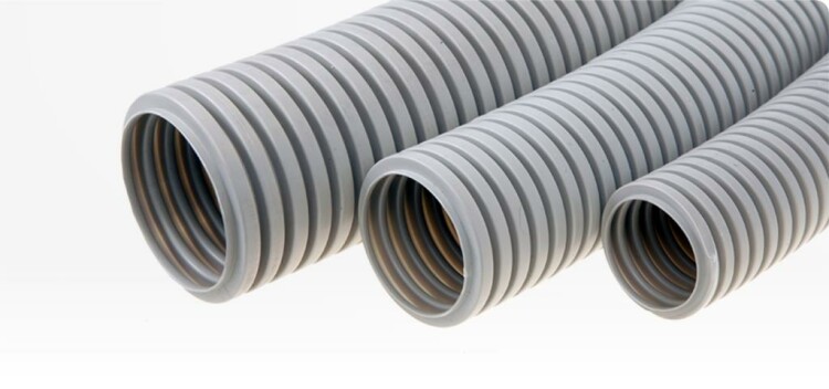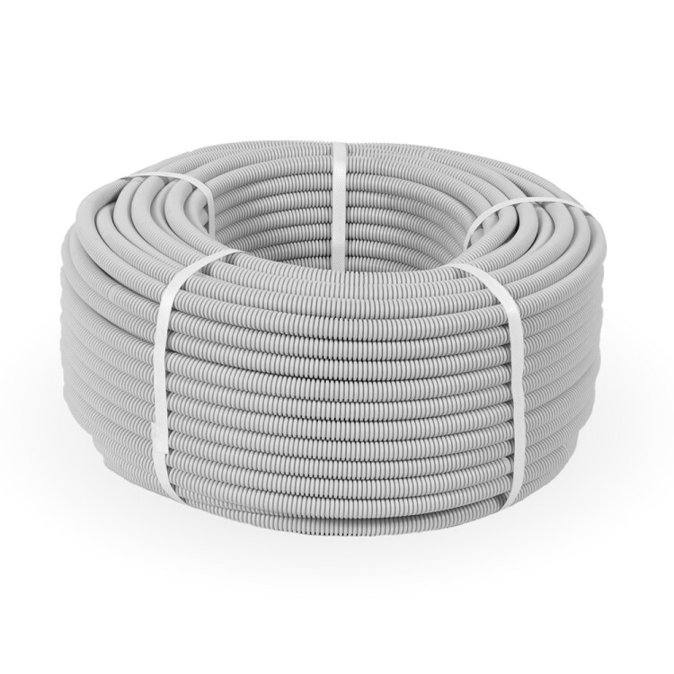 Труба ПВХ гибкая гофрированная д.16 мм, лёгкая, с протяжкой, цвет серый, (Бухта 100м)
