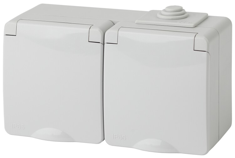 Б0035991 Розетка 2х2Р+Е 16А с крышкой IP65 серый ЭРА