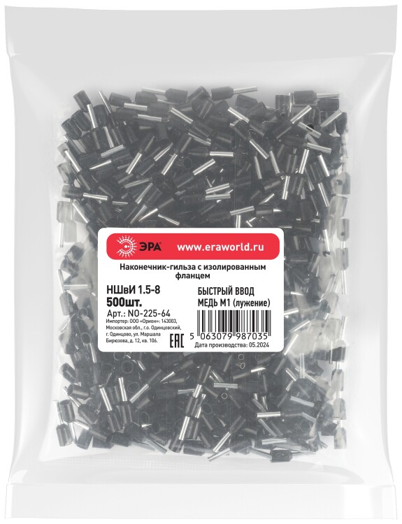Наконечник-гильза ЭРА NO-225-64 НШвИ 1,5-8 с изолированным фланцем (упаковка 500 шт.)
