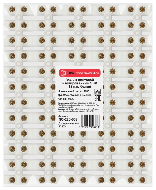 Зажим винтовой ЭРА NO-225-508 изолированный ЗВИ-нг 100А (6.0-40 мм2) 12 пар белый