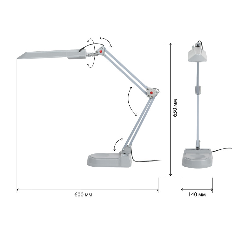 Настольный светильник ЭРА NL-202-G23-11W-GY с лампой PL на струбцине и с основанием серый