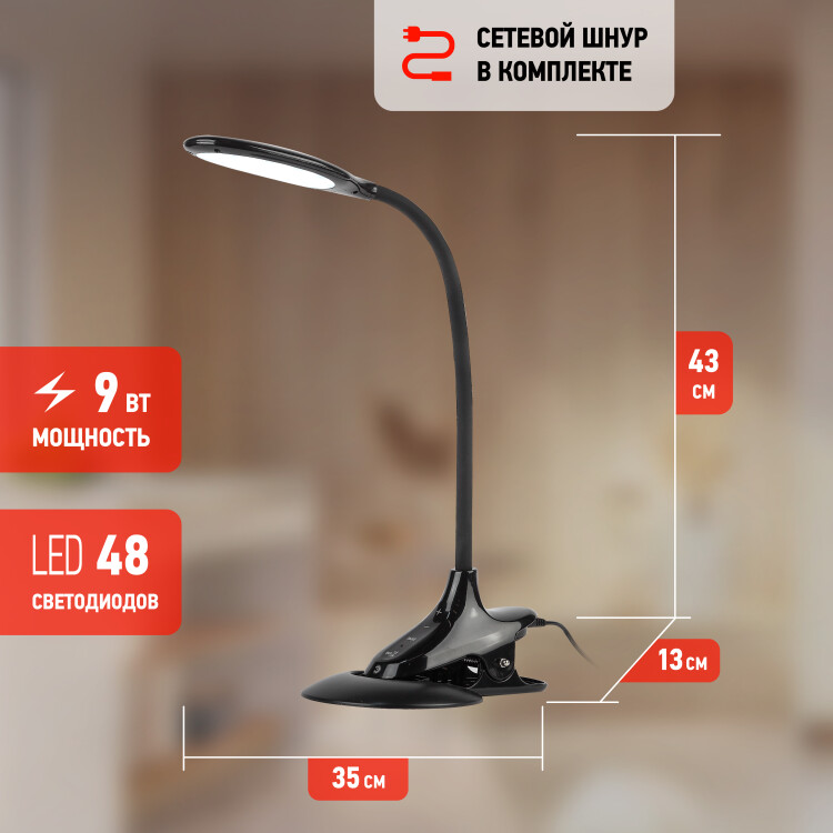 Светильник настольный NLED-454-9W-BK 9Вт 3000/4500/6000K IP20 черный