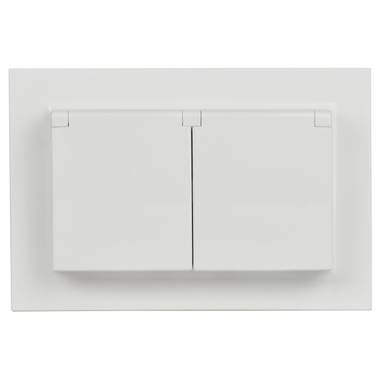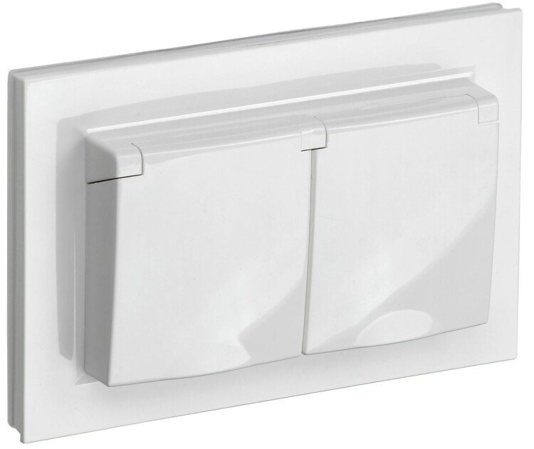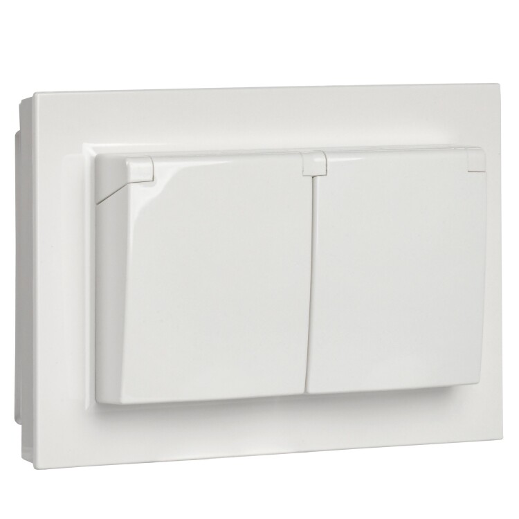 Розетка 2х2P+E (2 поста) со шторками с крышкой 16А в сборе IP44 белый BRITE