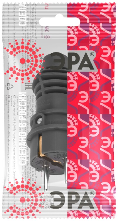 Вилка ЭРА VX13-B-IP44 каучуковая c заземлением 16А IP44 прямая черная