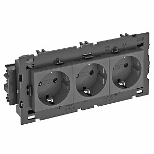 Розетка тройная 0° Modul45connect с з/к, 250 В, 16A (черный) Тип: STD-D0C8 SWGR3