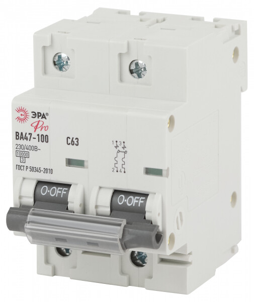 Автоматический выключатель ЭРА PRO NO-902-276 ВА47-100 2Р 63А кривая С 10 кА