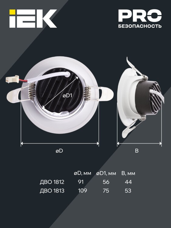 PRO Светильник LED ДВО 1813 9Вт 4000К IP20 круг белый IEK
