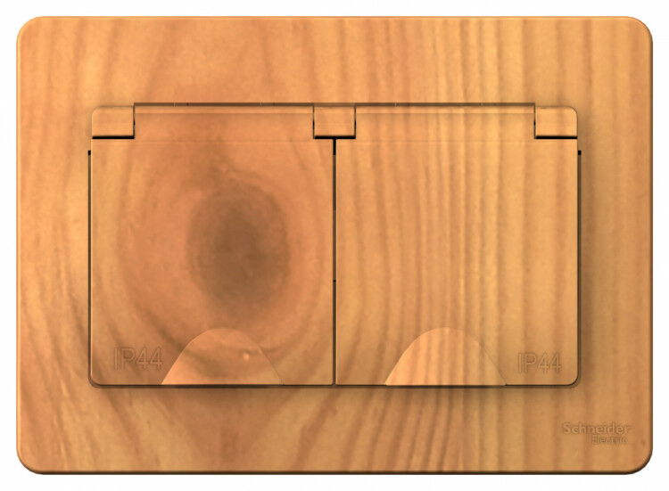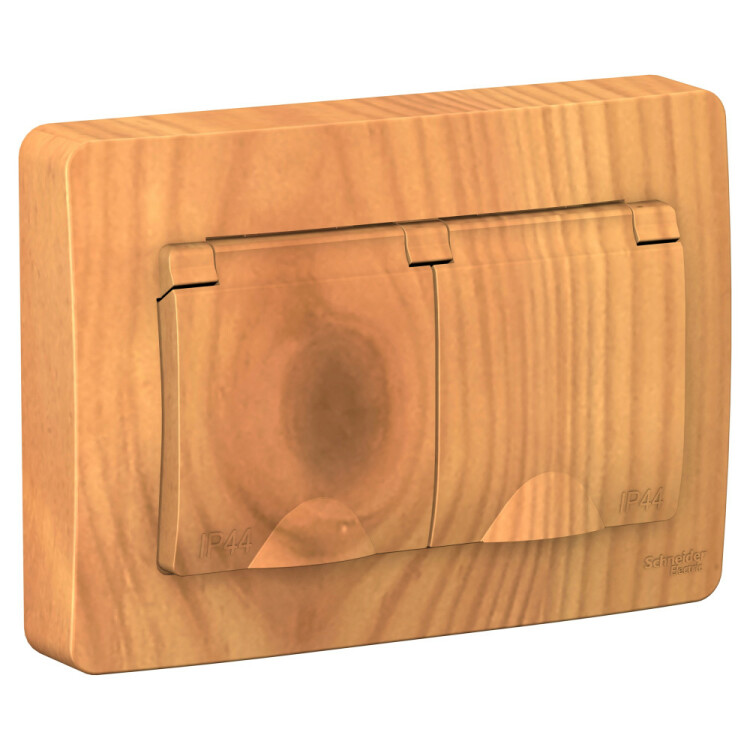 BLANCA С/У IP44 РОЗЕТКА двойная с заземл. со штор., с крышками, 16А, 250В, ЯСЕНЬ