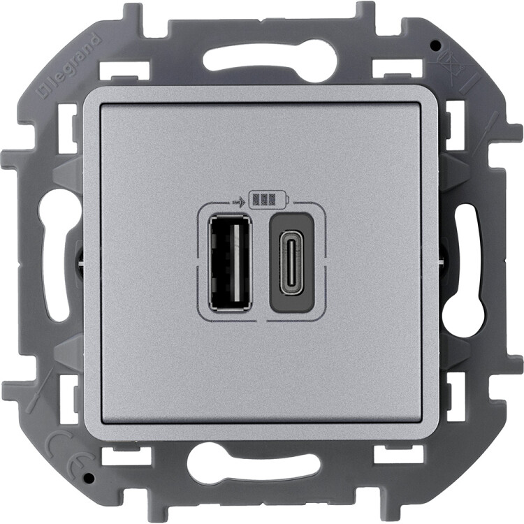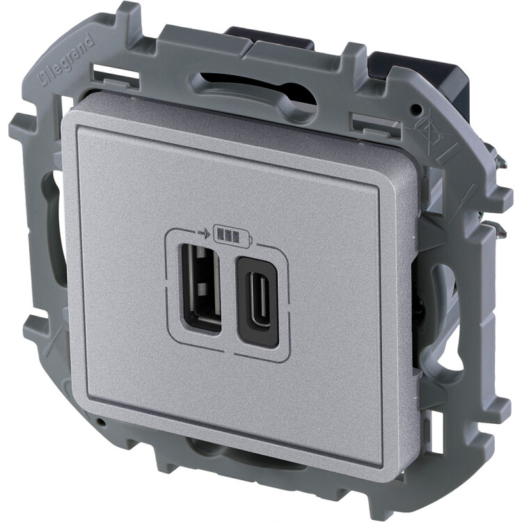 Зарядное устройство с двумя USB-разьемами A-C 240В/5В 3000мА алюминий INSPIRIA