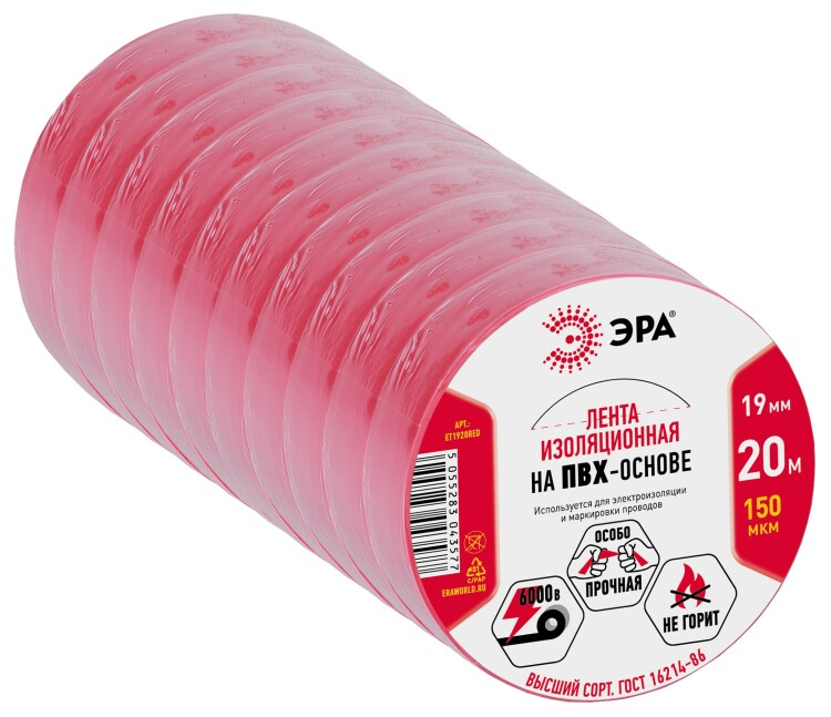 Изолента ПВХ красная 19 мм х 20 м (модель 43584/43577)