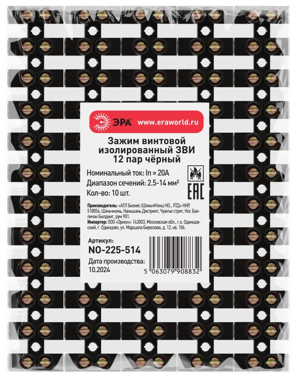 Зажим винтовой ЭРА NO-225-514 изолированный ЗВИ-нг 20А (2.5-14 мм2) 12 пар чёрный