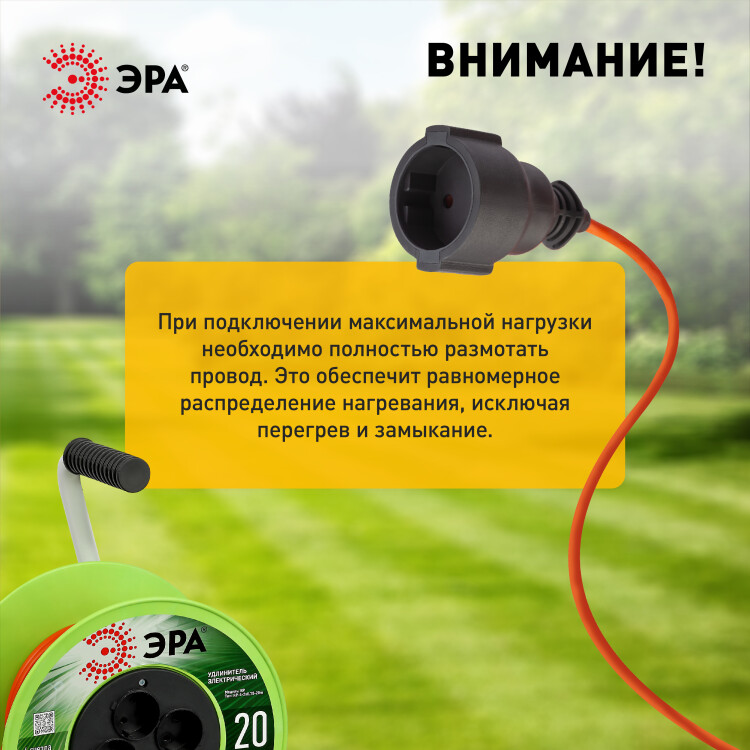 Удлинитель силовой ЭРА RP-4-2x0.75-20m на пластиковой катушке без заземления 4 розетки 20м ПВС 2х0,75мм2