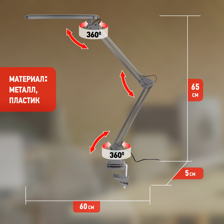 Светильник настольный NLED-441-7W-S 7Вт 3000К IP20 струбцина серебро