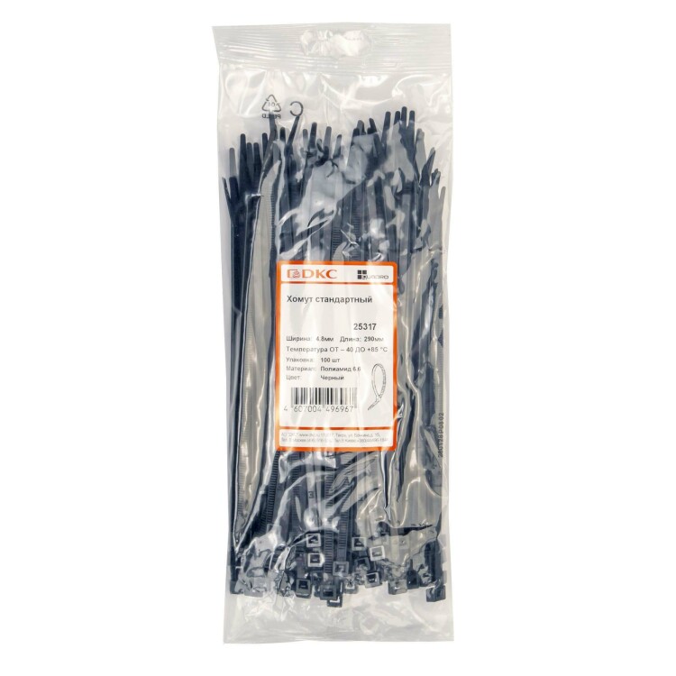 Хомут кабельный (стяжка) 290ммx4.8ммx1.4мм с внутр. зубчатым зацеплением пластик черный макс.d охвата79мм DKC
