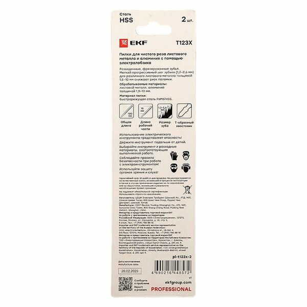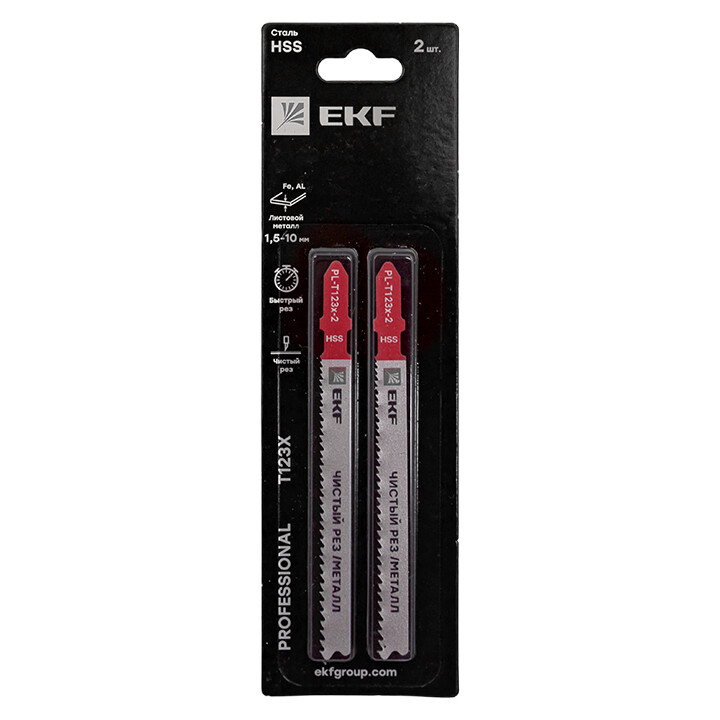 Пилки для электролобзика T123X (чистовой рез листового металла и Al)(HSS)(2 шт) EKF Professional